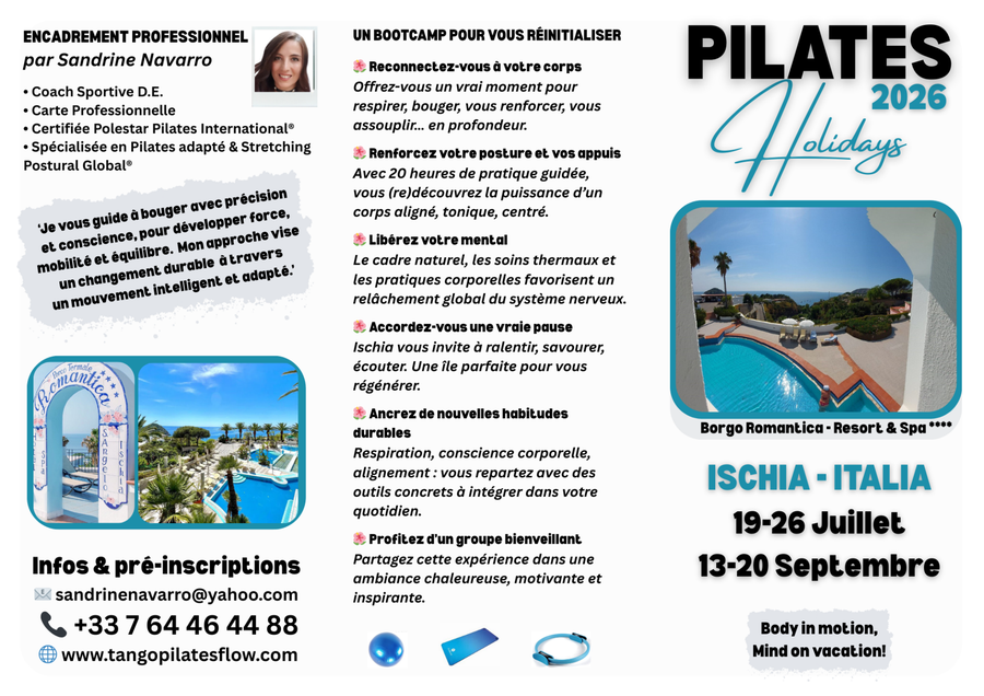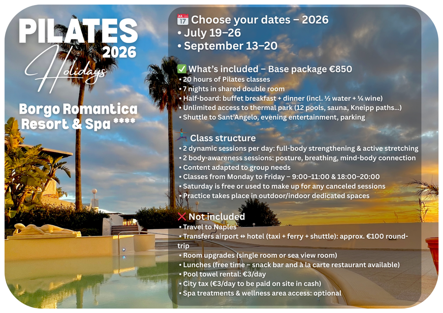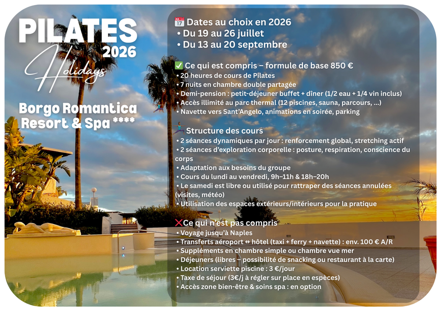 🧘♀️ Rejoignez-moi à Ischia, en Italie, pour un Bootcamp Pilates unique dans un Resort & Spa 4 étoiles.